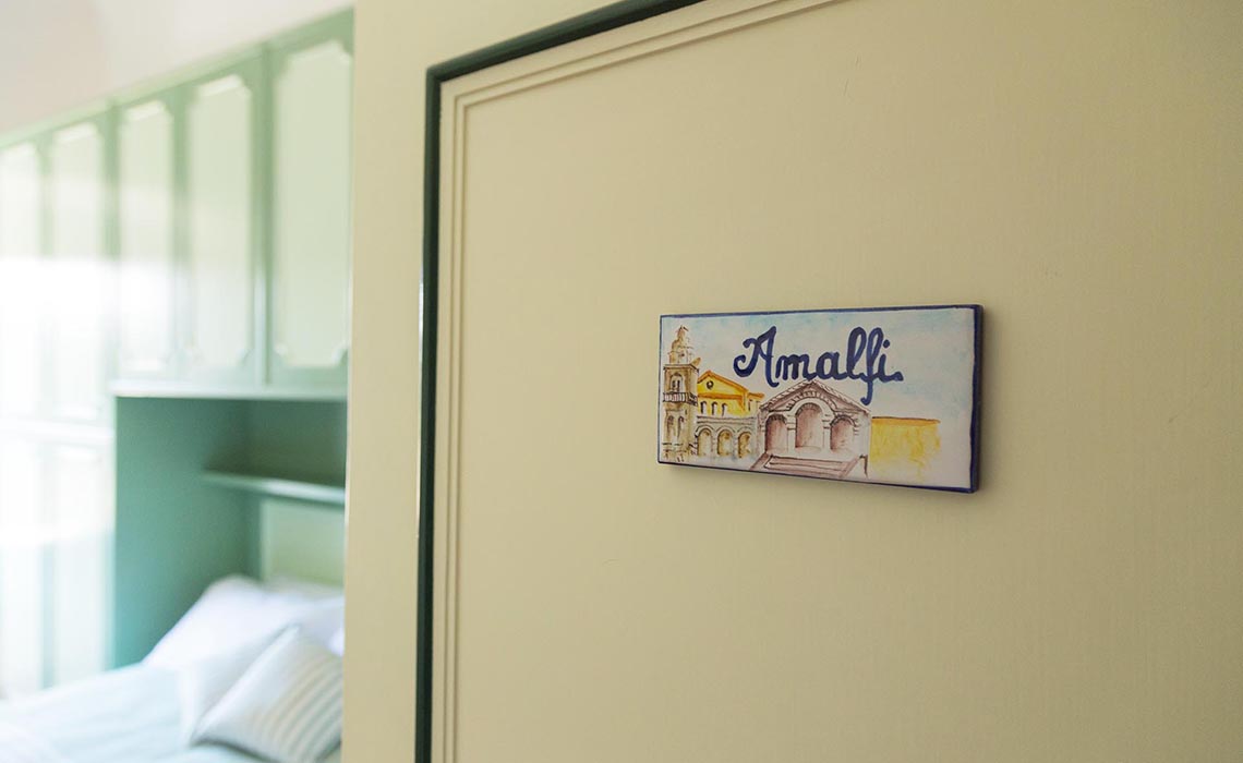 The AMALFI room, measuring approximately 23 square metres, is located on the first floor and is furnished with a double bed or two single beds. The private bathroom is external and is equipped with a full toilet, shower and courtesy set.