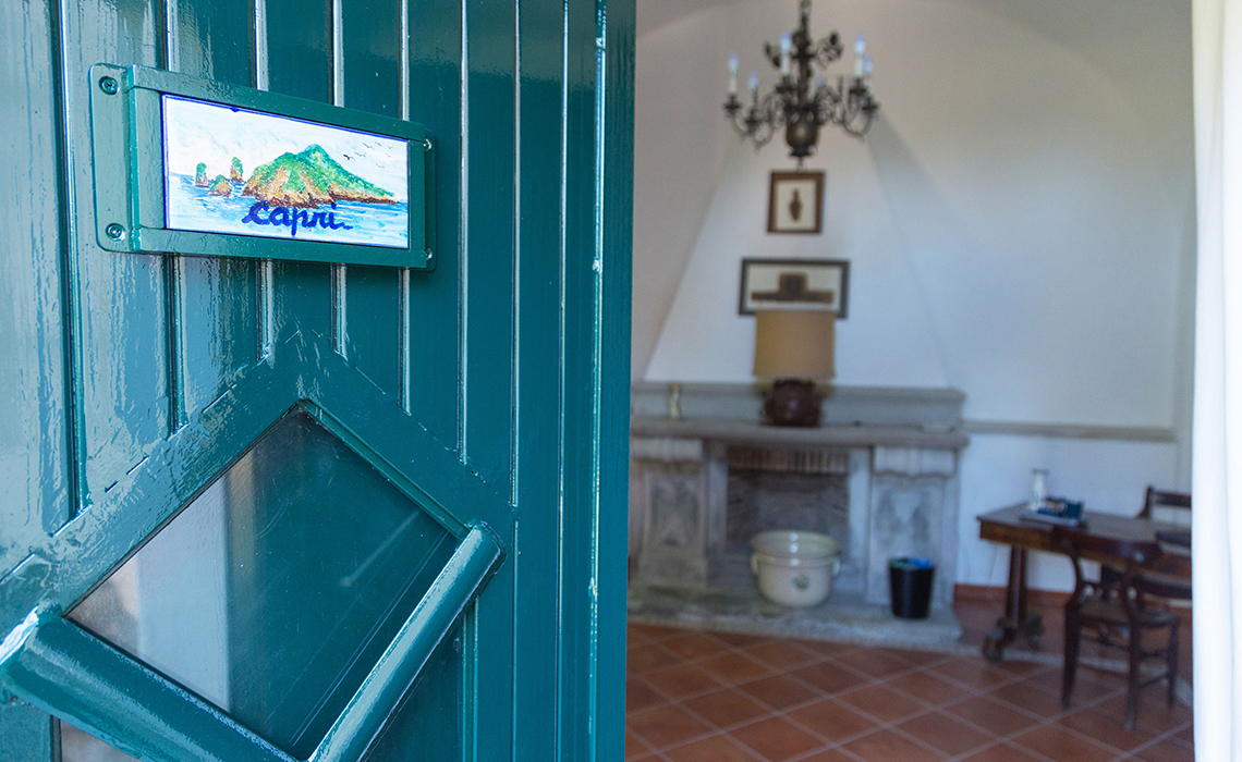 The furniture is wooden, simple and comfortable in keeping with local tradition: double bed, table, chairs, wardrobe and mirror. The floors are in terracotta while the bathroom is made of decorated Vietri ceramics. There is also an antique stone fireplace.
